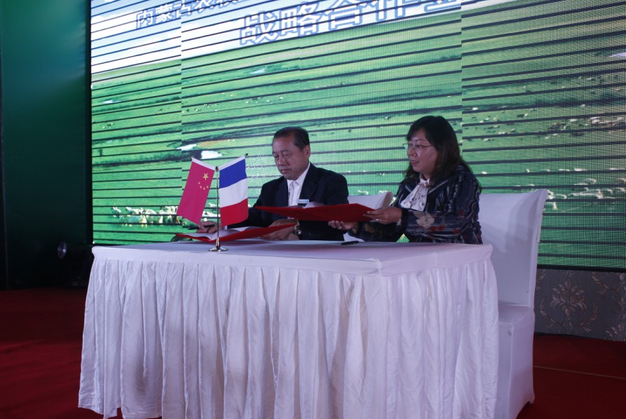 領導致辭后,內蒙古農牧業(yè)產業(yè)化龍頭企業(yè)協(xié)會同法國工商會共同簽署了友好合作協(xié)議。