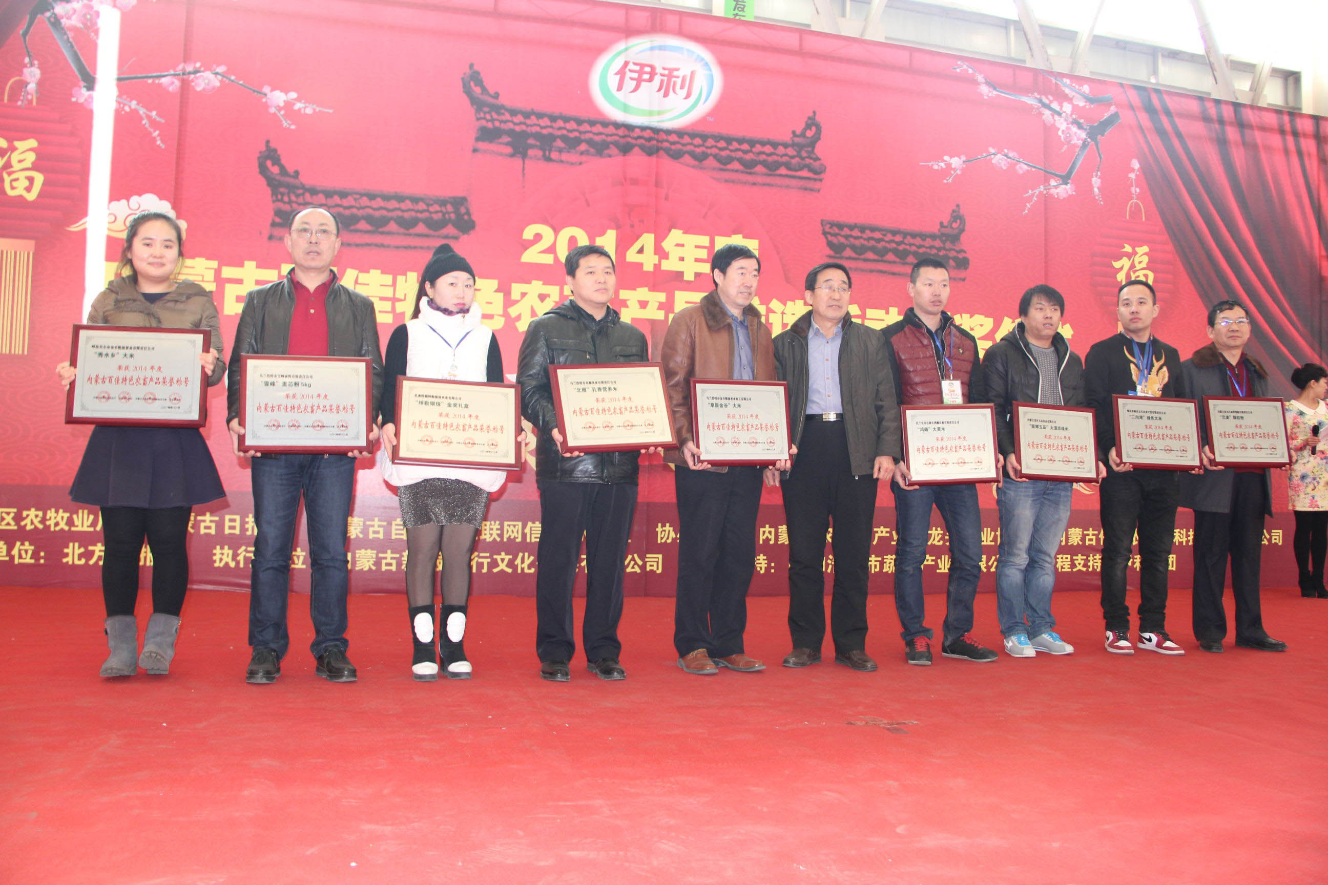 26日,由自治區(qū)農(nóng)牧業(yè)廳、內(nèi)蒙古日?qǐng)?bào)社、自治區(qū)網(wǎng)信辦主辦,內(nèi)蒙古農(nóng)牧業(yè)產(chǎn)業(yè)化龍頭企業(yè)協(xié)會(huì)、內(nèi)蒙古保全農(nóng)產(chǎn)品科技發(fā)展有限公司協(xié)辦,北方新報(bào)承辦的“內(nèi)蒙古百佳特色農(nóng)畜產(chǎn)品”推選活動(dòng)頒獎(jiǎng)儀式暨2015“青城年貨大集”在呼和浩特市保全莊農(nóng)貿(mào)市場(chǎng)2號(hào)廳正式開(kāi)幕。自治區(qū)農(nóng)牧業(yè)廳副廳長(zhǎng)賈躍峰、內(nèi)蒙古日?qǐng)?bào)社黨委委員、副總編輯孫亞輝、內(nèi)蒙古農(nóng)牧業(yè)廳產(chǎn)業(yè)化處處長(zhǎng)王補(bǔ)在、北方新報(bào)社總編輯李德斌、內(nèi)蒙古農(nóng)牧業(yè)產(chǎn)業(yè)化龍頭企業(yè)協(xié)會(huì)執(zhí)行會(huì)長(zhǎng)林永亮等出席頒獎(jiǎng)儀式,賈躍峰副廳長(zhǎng)在頒獎(jiǎng)儀式上致辭。此次評(píng)選活動(dòng)共112家農(nóng)牧業(yè)企業(yè)的120件產(chǎn)品被評(píng)選為“內(nèi)蒙古百佳特色農(nóng)畜產(chǎn)品”。獲獎(jiǎng)企業(yè)參加了此次2015“青城年貨大集”,展出了糧油、畜、禽、魚(yú)、蛋、奶、蔬菜、水果等多種特色產(chǎn)品,是首府春節(jié)前夕的一次大型展示、展銷(xiāo)、采購(gòu)活動(dòng)。