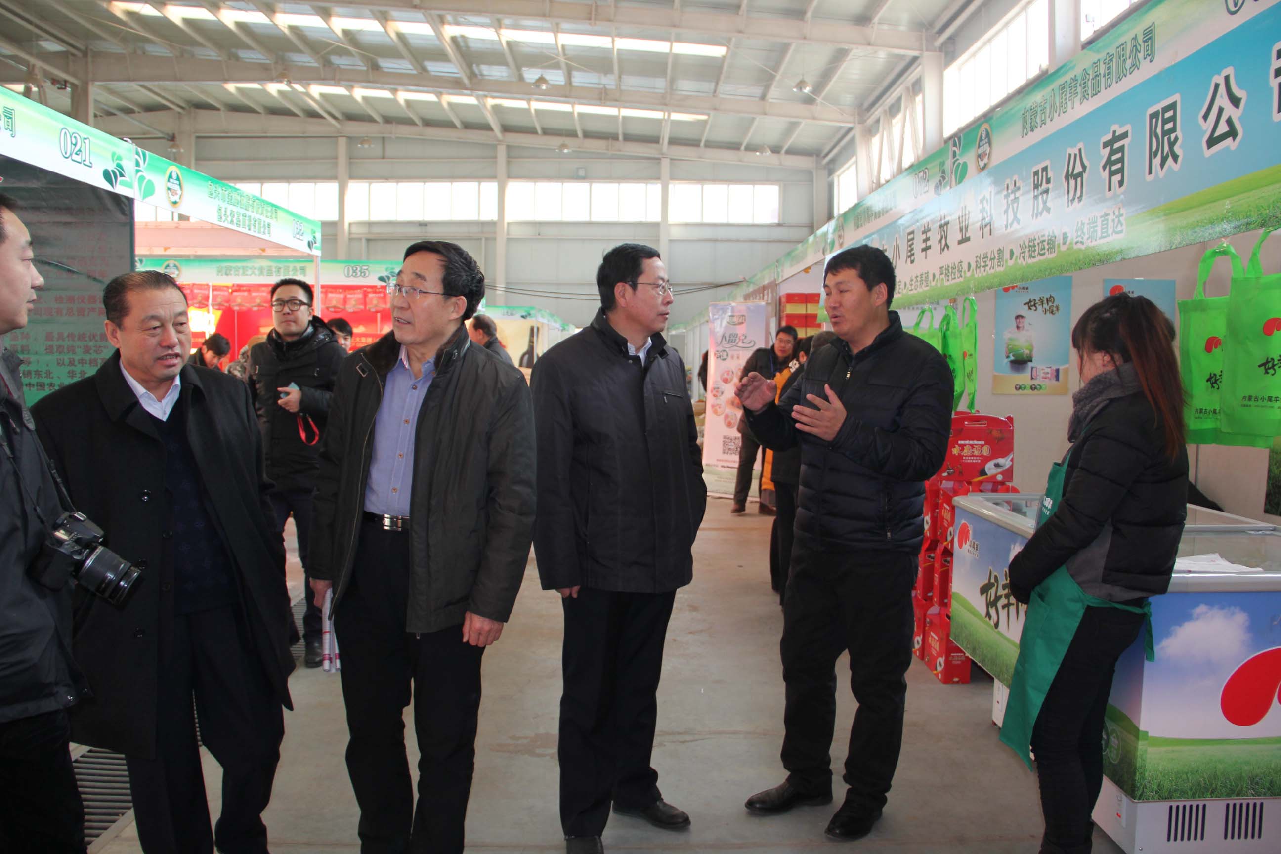 會(huì)員企業(yè)內(nèi)蒙古小尾羊牧業(yè)科技股份有限公司負(fù)責(zé)人為農(nóng)牧業(yè)廳副廳長(zhǎng)賈躍峰、農(nóng)牧業(yè)廳產(chǎn)業(yè)化處處長(zhǎng)王補(bǔ)在、協(xié)會(huì)執(zhí)行會(huì)長(zhǎng)林永亮介紹公司產(chǎn)品
