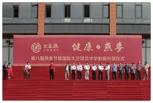 818日,雨后初霽,三主糧第八屆燕麥節(jié)暨三主糧國(guó)際太空館開館及中華影廊揭幕儀式在位于呼和浩特市的三主糧燕麥產(chǎn)業(yè)園區(qū)舉行。國(guó)際太空館是我國(guó)首家國(guó)際性的航天高科技體驗(yàn)中心,全國(guó)性的青少年國(guó)防教育基地。中華影廊同日開幕。