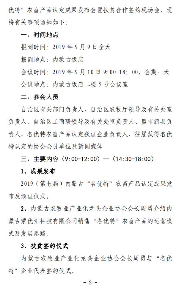 標(biāo)題:關(guān)于召開 2019(第七屆)內(nèi)蒙古“名優(yōu)特” 農(nóng)畜產(chǎn)品認(rèn)定成果發(fā)布會(huì)暨扶貧合作簽約 現(xiàn)場會(huì)的通知