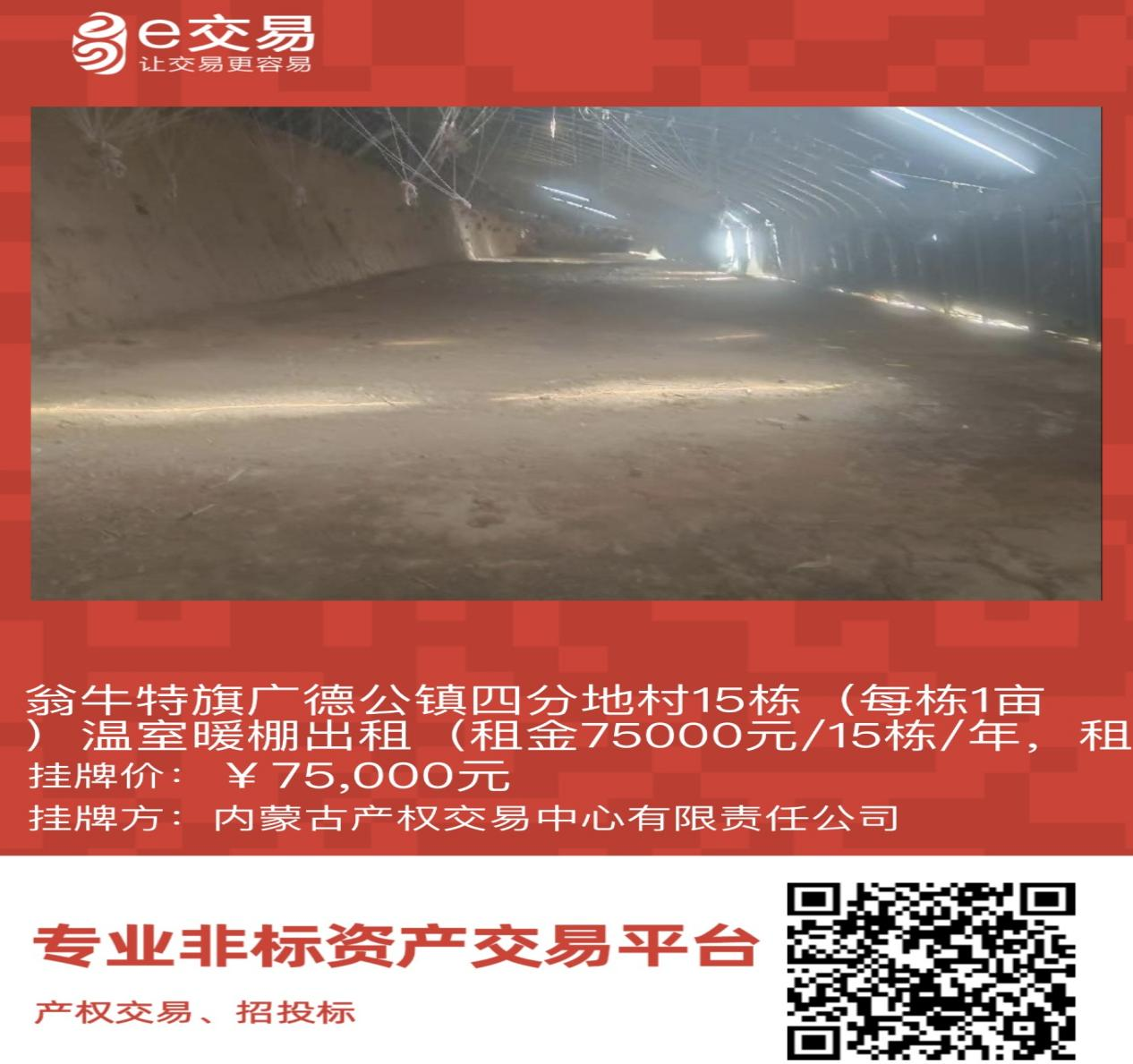 翁牛特旗廣德公鎮(zhèn)四分地村15棟(每棟1畝)溫室暖棚出租(租金75000元/15棟/年,租期1年)