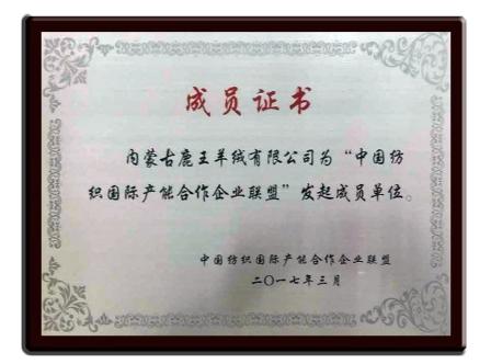 2017“中國(guó)紡織國(guó)際產(chǎn)能合作企業(yè)聯(lián)盟”發(fā)起成員單位獎(jiǎng)牌