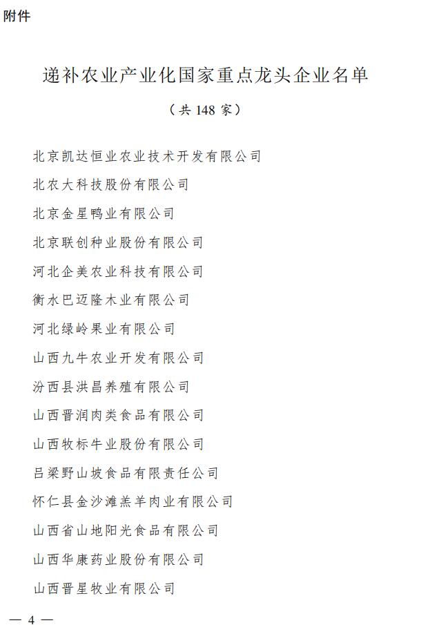 附件:新遞補的農業(yè)產業(yè)化國家重點龍頭企業(yè)名單(共148 家)