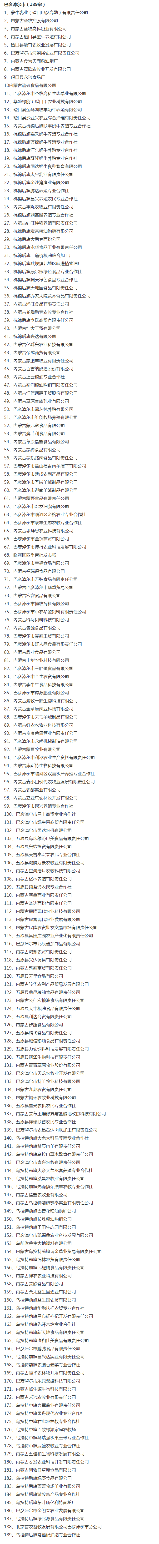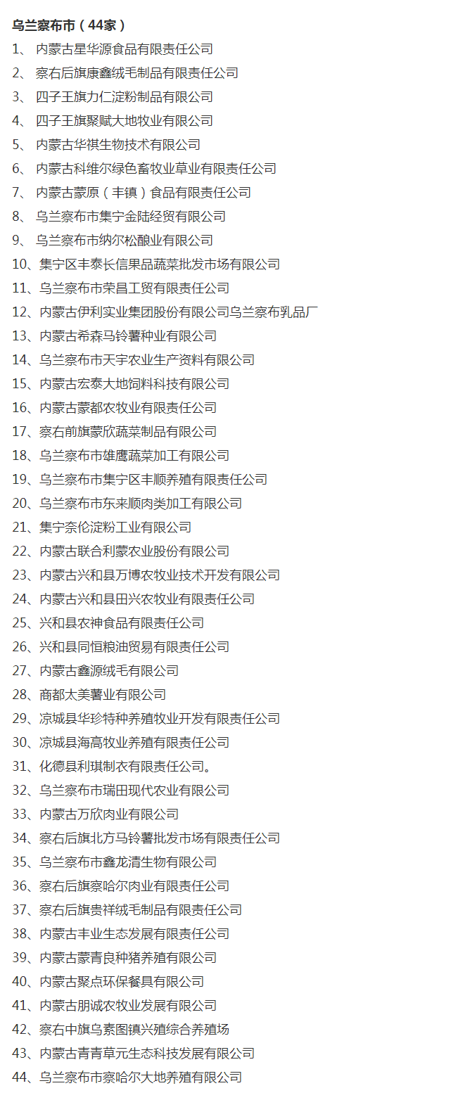 企業(yè)名稱:截止2017年末盟市級農(nóng)業(yè)產(chǎn)業(yè)化重點龍頭企業(yè)名單